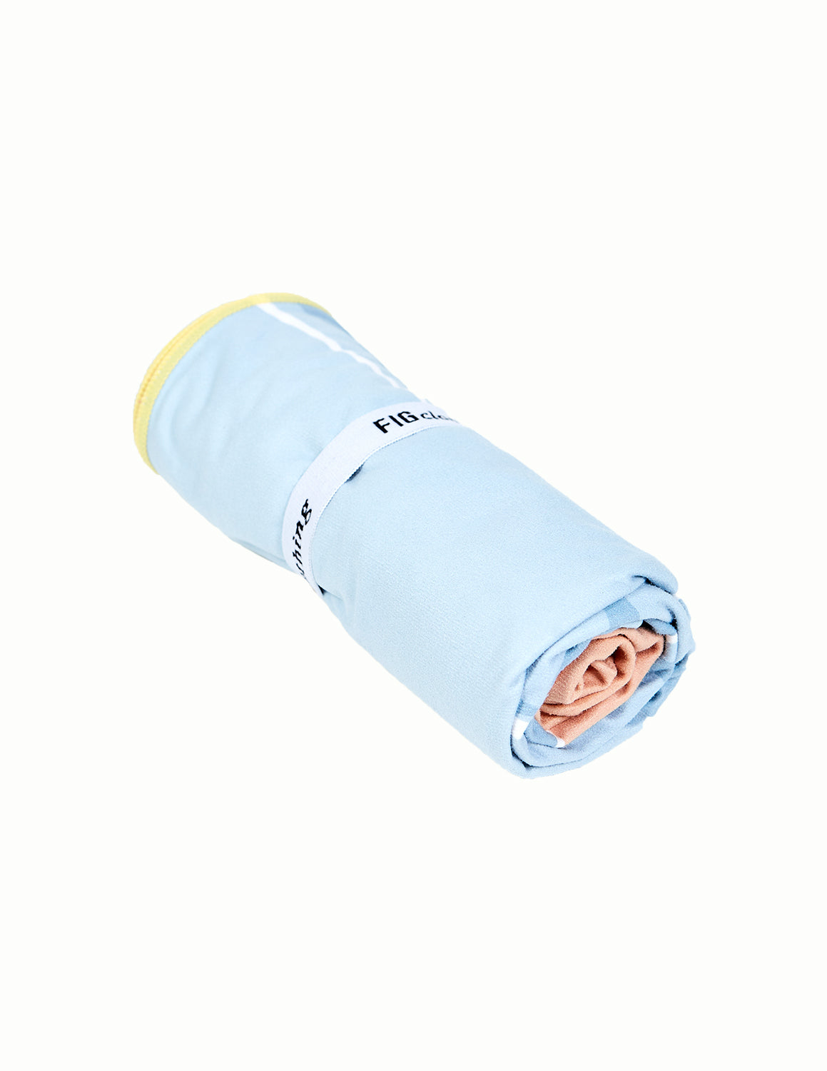 Ultra-absorbent beach towel made from Micro-Lux™, an innovative fabric crafted from recycled polyester. Compact, reversible, and designed with an elastic loop for easy storage.