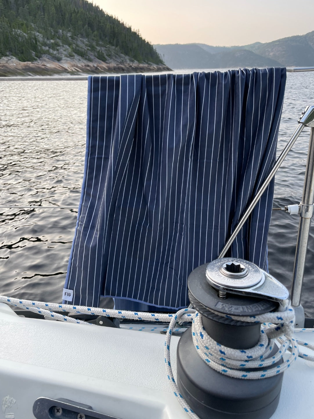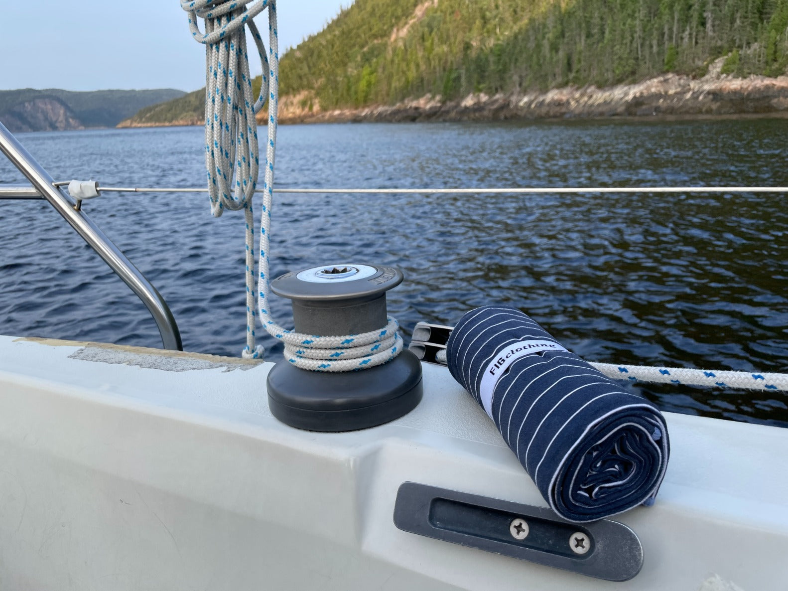 Super-absorbent beach towel made from Micro-Lux™ (crafted from recycled polyester). Compact and reversible, featuring an elastic storage loop.