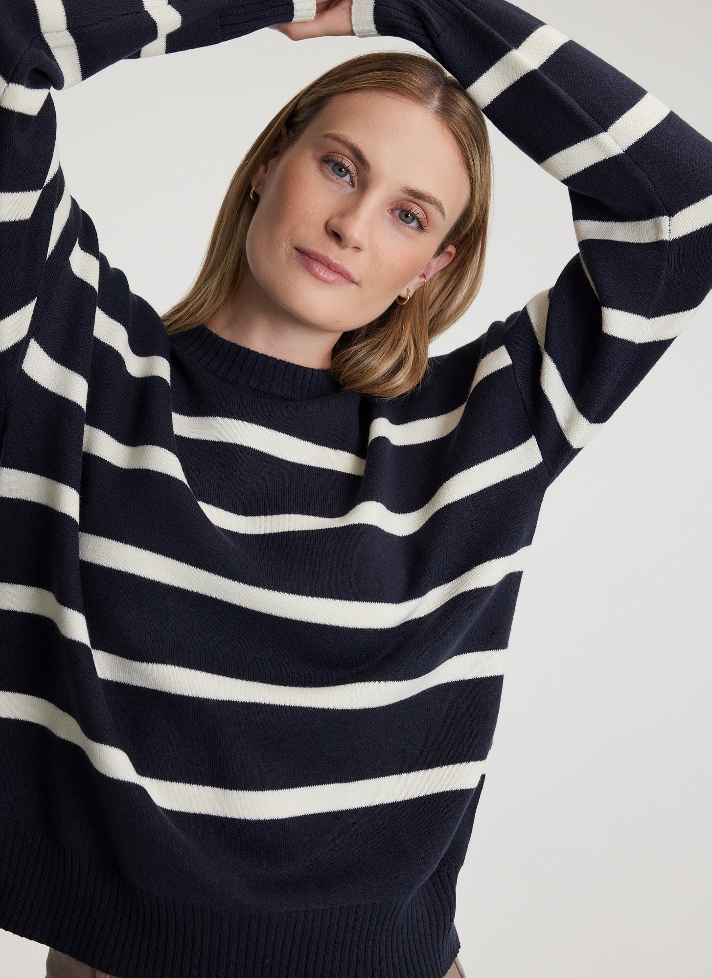 Manches à épaules tombantes et détails en bord-côte soigneusement finis aux ourlets et au col.